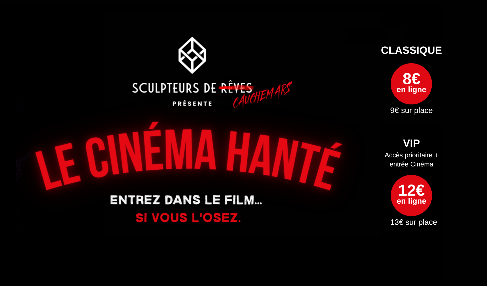 VIP (accès prioritaire + entrée au cinéma) 12€ en ligne, 13 sur place