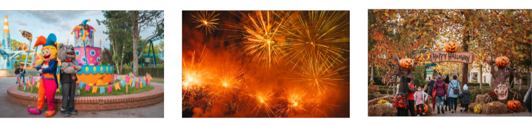 Tout le parc s’est métamorphosé : décors immersifs, comédiens en déambulation, maison hantée, animations et concours, banquets spectacle et nocturnes clôturées par des feux d’artifice.